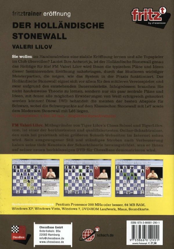 Sie wollen im Handumdrehen eine stabile Eröffnung lernen und alle Topspieler im Club überrollen? Lautet Ihre Antwort ja, ist der Holländische Stonewall genau das Richtige für Sie! FM Valeri Lilov wird Ihnen die typischen Pläne und Ideen dieser faszinierenden Eröffnung nahebringen, durch das Studieren wichtiger Meisterpartien, die zeigen, wie das System in der Praxis funktioniert. Der Holländische Stonewall eignet sich vor allem für den mittleren Vereinspieler, und zwar aufgrund des entstehenden Bauernskeletts. Infolgedessen brauchen Sie nicht haufenweise Theorie zu lernen, sondern nur ein paar zentrale Pläne und Ideen, mit denen alle möglichen Erwiderungen von Weiss erfolgreich gekontert werden können! Diese DVD behandelt die meisten der besten Abspiele für Schwarz, wobei die Schwerpunkte auf dem Klassischen Stonewall mit Le7 sowie dem Modernen Stonewall mit Ld6 liegen. Videospielzeit: 4 Std. 38 min. – Englische Sprachversion!