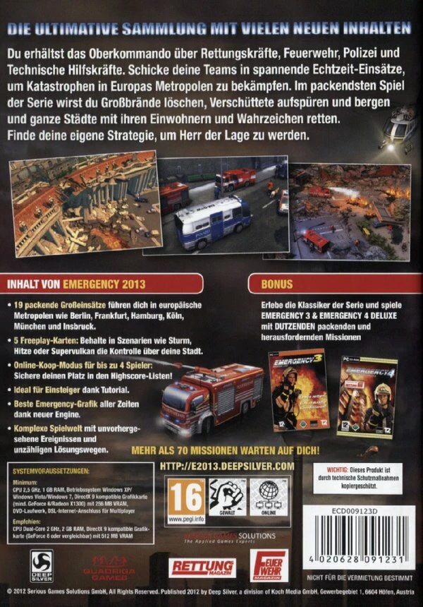 Finde deine eigene Strategie, um Herr der Lage zu werden. Die EMERGENCY Complete Collection 2013 bringt dir alle Inhalte von EMERGENCY 2012 GOLD, EMERGENCY 2013 und erweitert die beliebte Serie um zahlreiche Spielstunden.